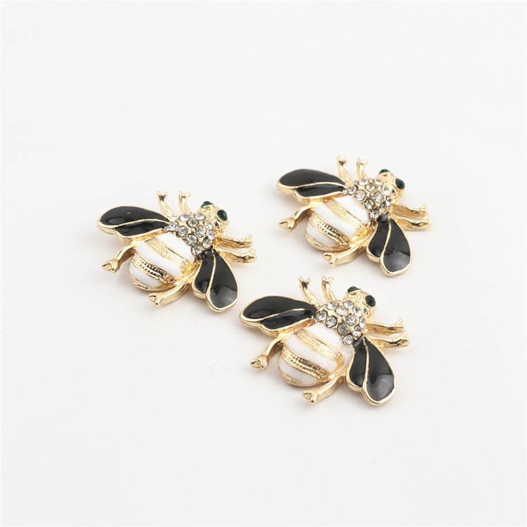 Металлическое украшение для кожи - декоративный зажим в виде насекомого, украшенного стразами, с белым брюшком и черными крылышками