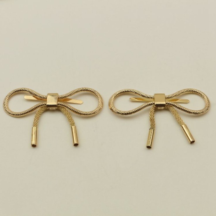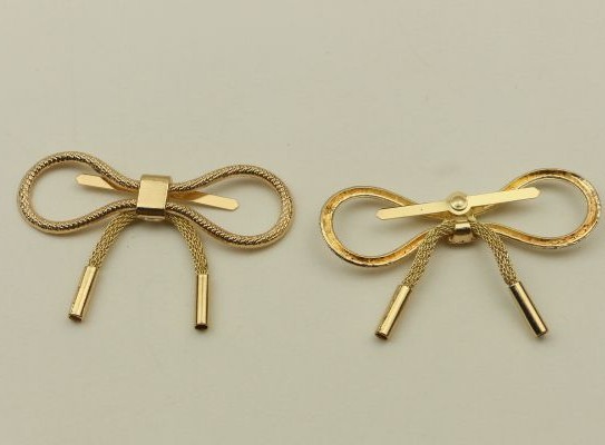 Металлическое украшение для кожи - декоративный зажим в форме бантика шнурочка.