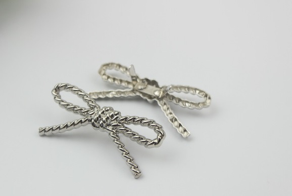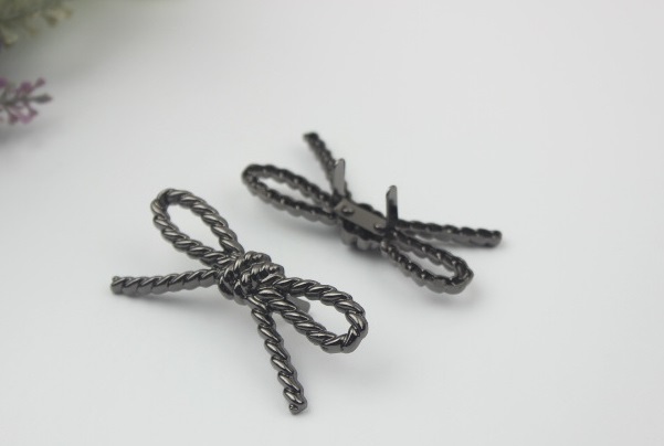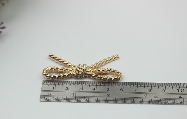 Металлическое украшение для кожи - декоративный зажим в форме плетеного бантика.