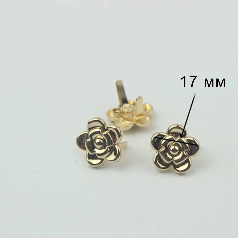 Металлическое украшение для кожи - декоративный зажим в виде цветочка подойдет для декора женской сумки, рюкзака, ремешков, поводков и пр.