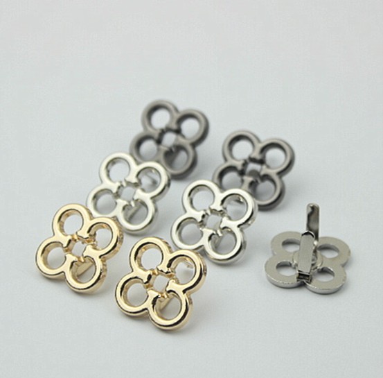 Металлическое украшение для кожгалантерейных изделий - декоративный зажим в виде четырехлистника