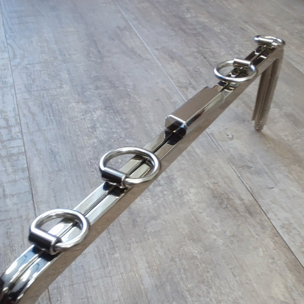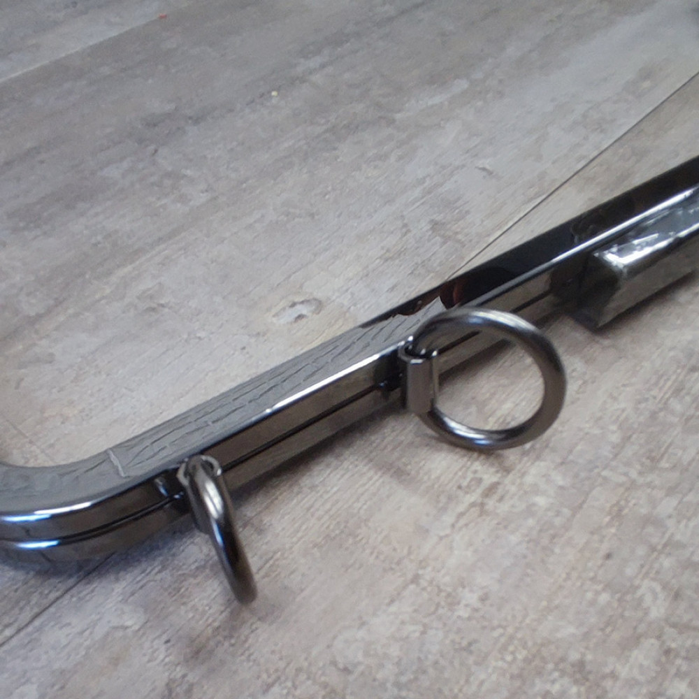 Фермуар винтовой металлический для изготовления текстильных, кожаных, вязаных сумок. Выполнен с кольцами под ремешок, цепочку или для
