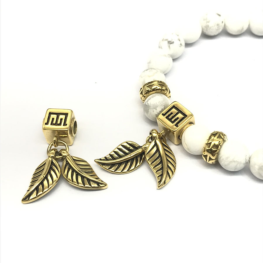 Бусина 4 мм для круглых браслетов Листья Сталь
