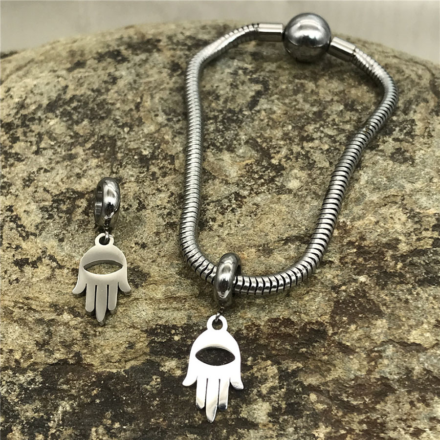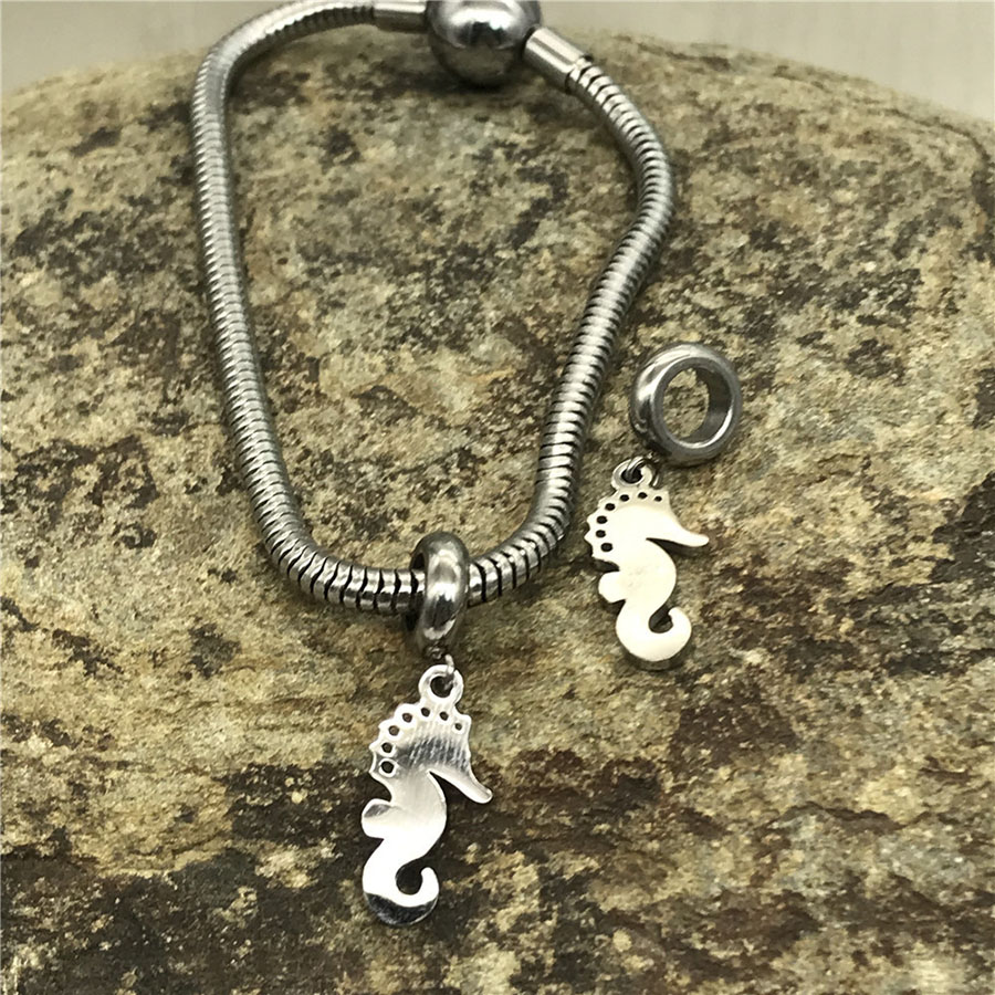 Бусины для браслета для кожаных шнуров круглого сечения с подвеской (рука или морской конек)