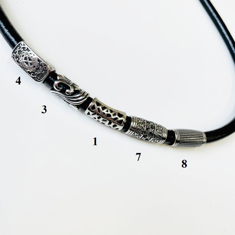 Бусины для браслета разных видов для кожаных шнуров круглого сечения 8 мм.