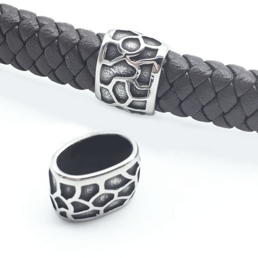 Бусины из нержавеющей стали для оформления браслетов из кожаных шнуров в стиле регализ. Бусины для кожаных браслетов имеют овальное отверстие с сечением 10х5 мм