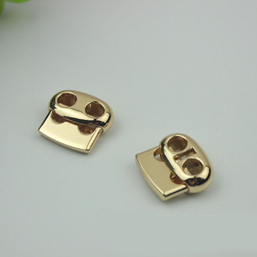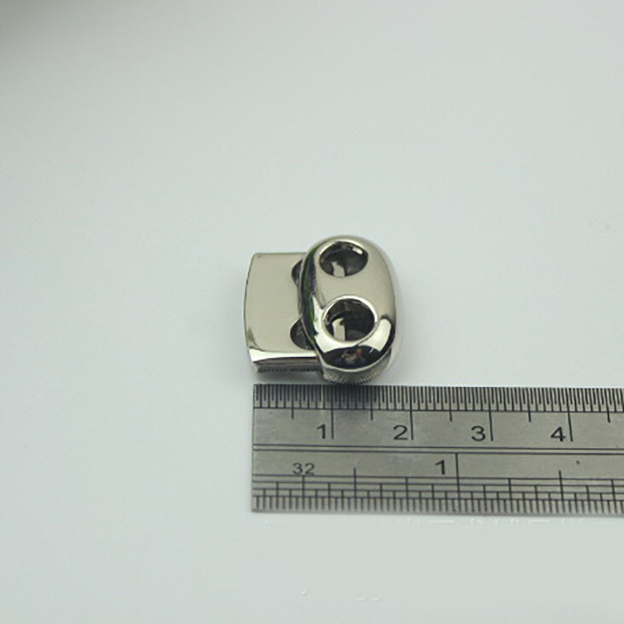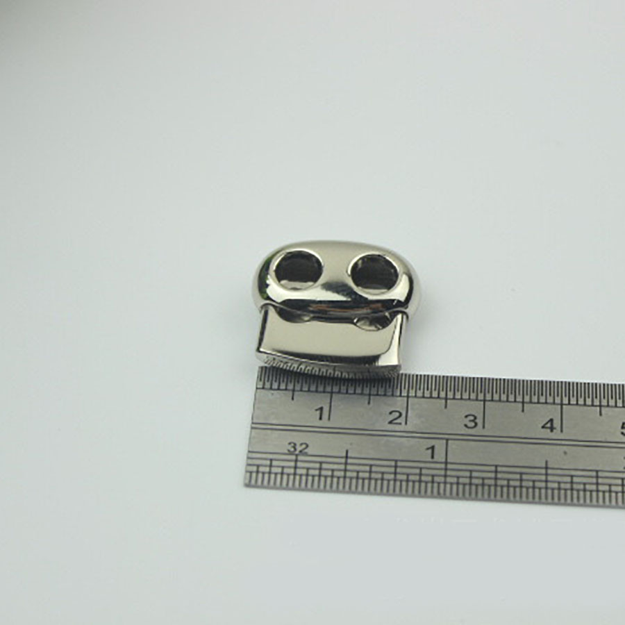 Зажим для шнура необходим для фиксации шнура в удобном положении на изделии. Фиксатор имеет два отверстия для продевания шнура или ленты.