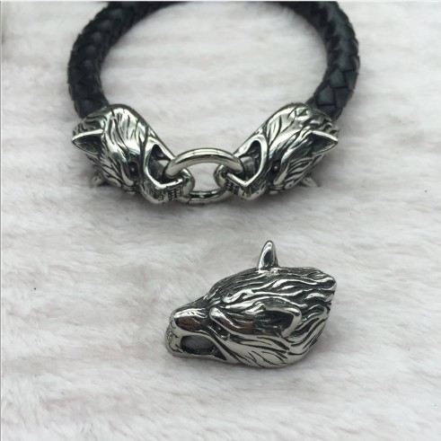 Концевики для браслета в виде волка на шнур круглого сечения диаметром около 8 мм, внешний размер - 18х30 мм