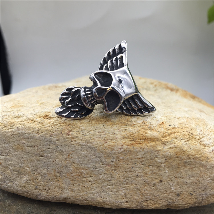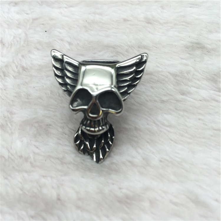 Концевик на два шнура 10х5 мм Череп с крыльями Сталь