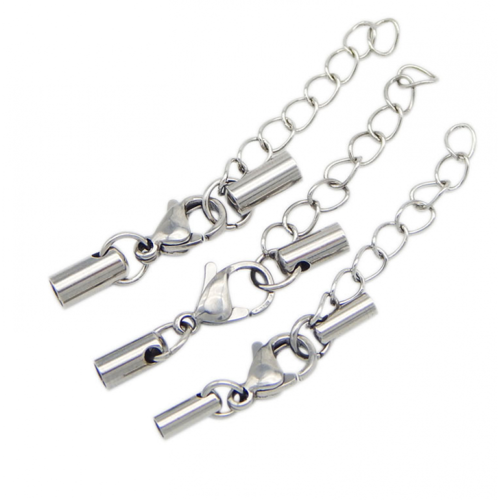 Концевики застежки с цепочкой-удлинителем, позволяющей регулировать длину, на шнуры круглого сечения диаметром 1мм, 1.5 мм, 2 мм, 2.5 мм, 3мм, 4мм, 5 мм, 6мм