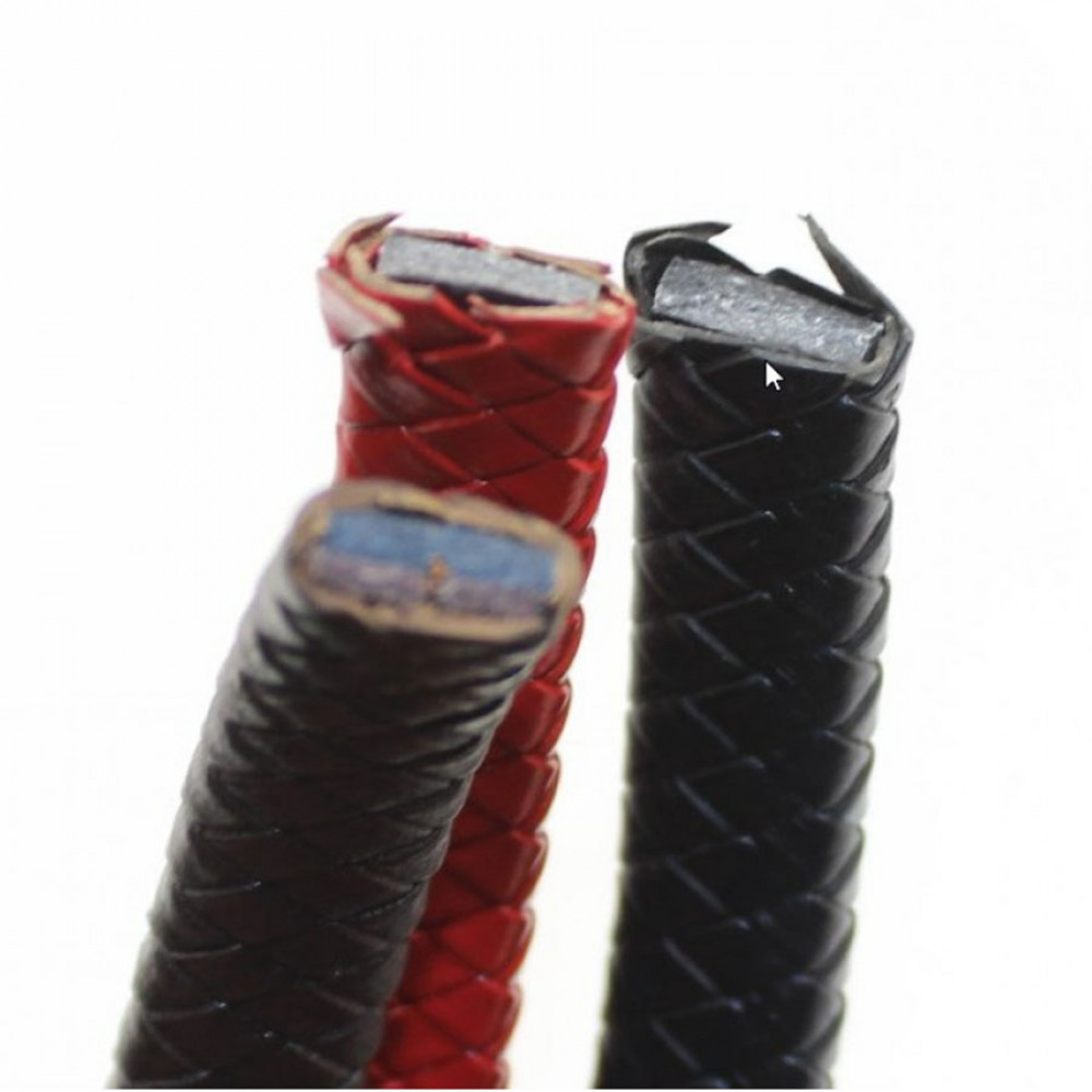 Шнур из натуральной кожи КРС интересного сложного плетения с сердечником (кордом) внутри. Сечение кожаного шнура может варьироваться от 11х5,6 мм до 12х6 мм (в настоящее время в наличии шнур  размера 11-11,2х5,6 мм).