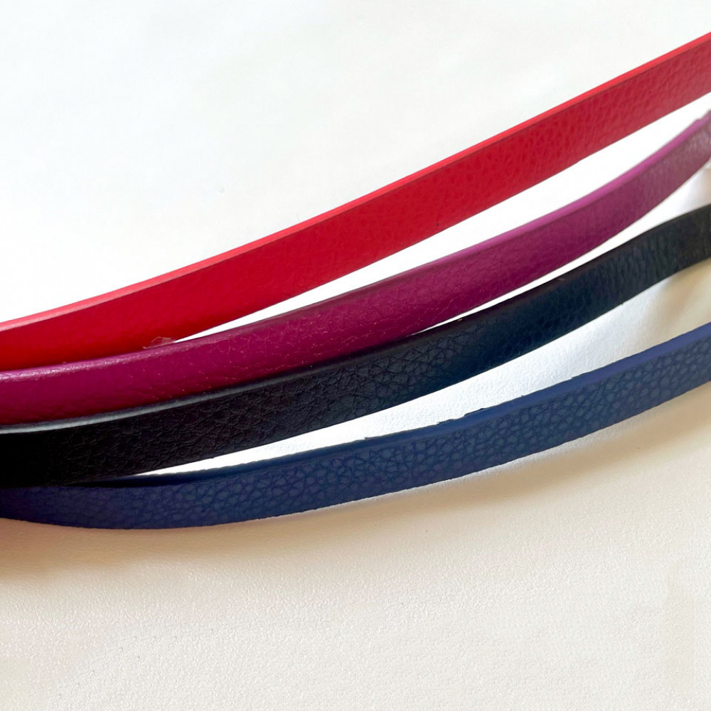 Шнур из искусственной кожи (микрофибра) двухслойный плоский 10х3 мм. Шнур двухсторонний, с одинаковой фактурой на лицевой и изнаночной стороне. Урез шнура обработан.