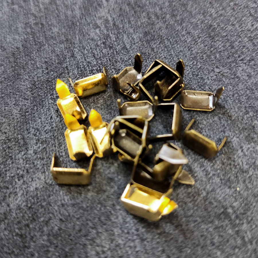 Маленькие зажимные клепки для скрепления небольших кожаных деталей, для украшения изделий из тонкой кожи и ткани.