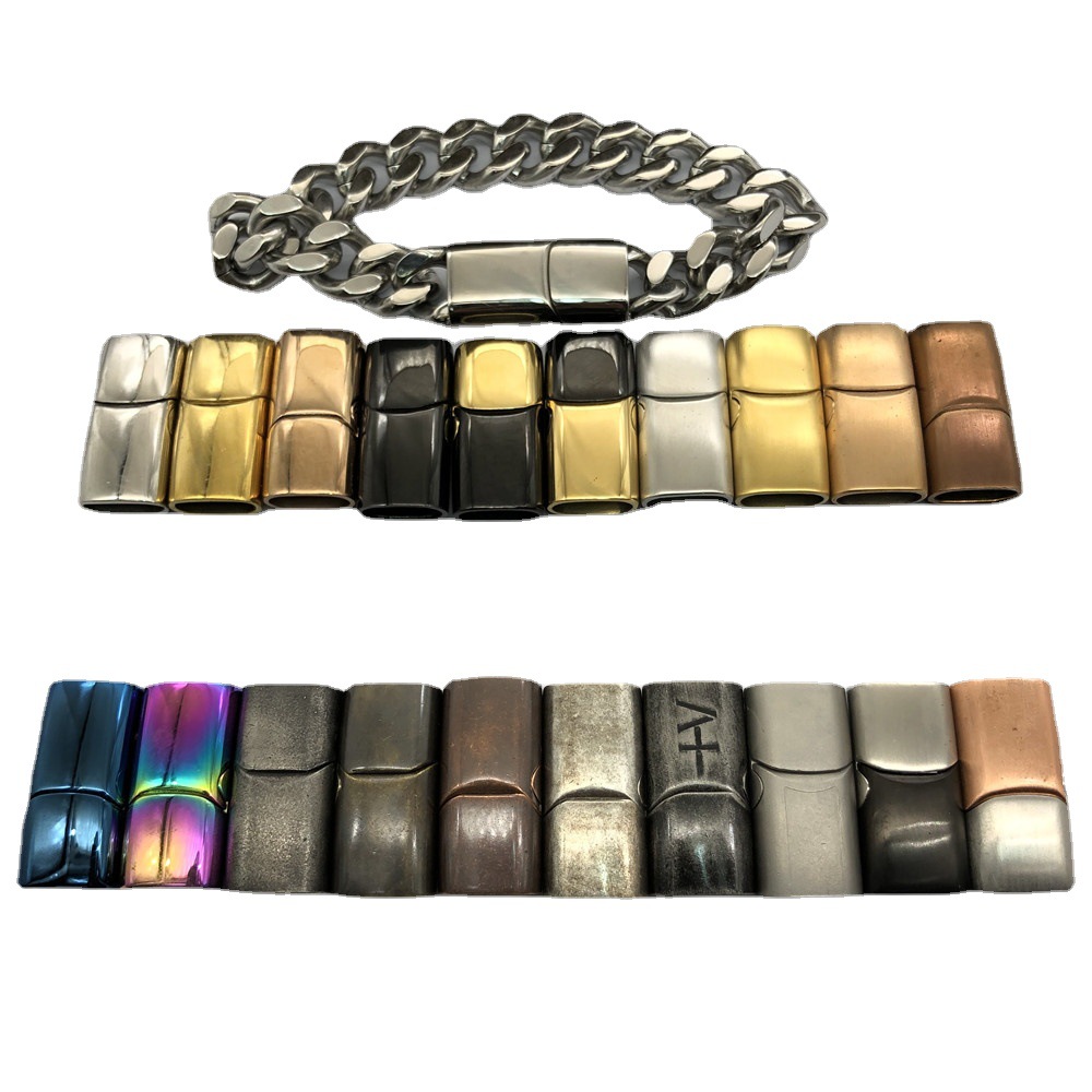 Замок магнитный из нержавеющей стали с покрытиями разных цветов - для плоских кожаных шнуров 10х5 мм. Габариты застежки 25х12 мм