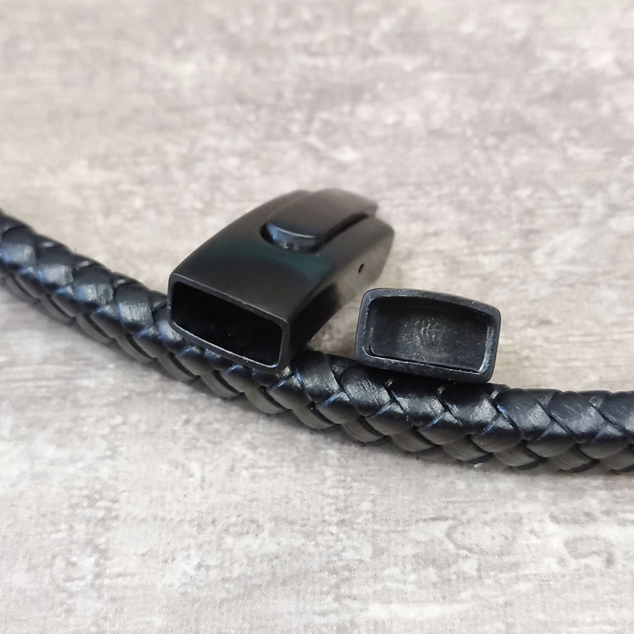 Замок магнитный из нержавеющей стали для плоских кожаных шнуров 10х5 мм.
