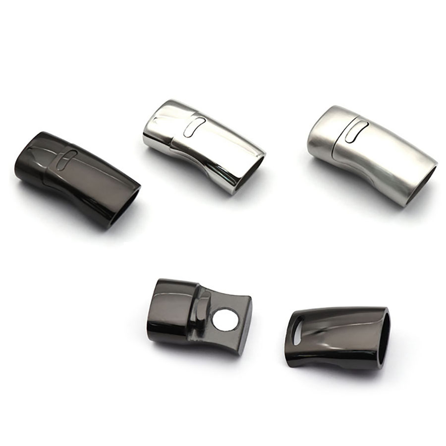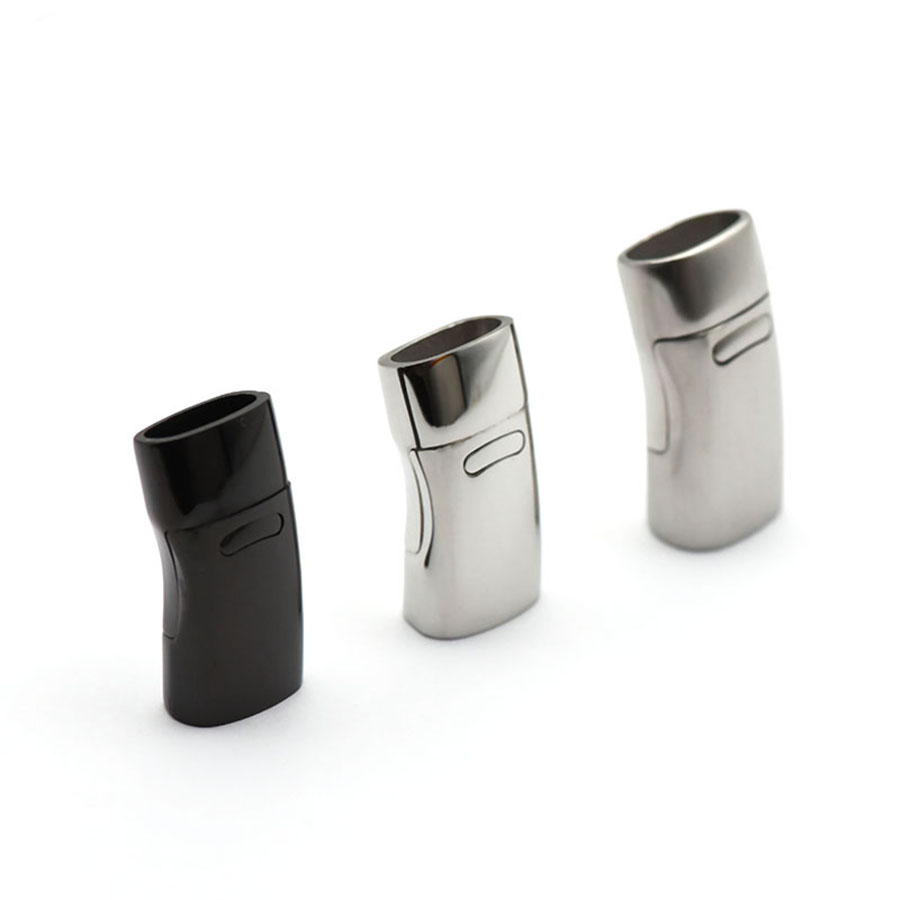 Замок магнитный из нержавеющей стали с покрытиями разных цветов - для плоских кожаных шнуров . Габариты застежки 27х13 мм