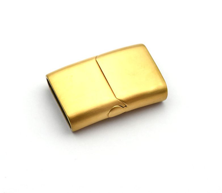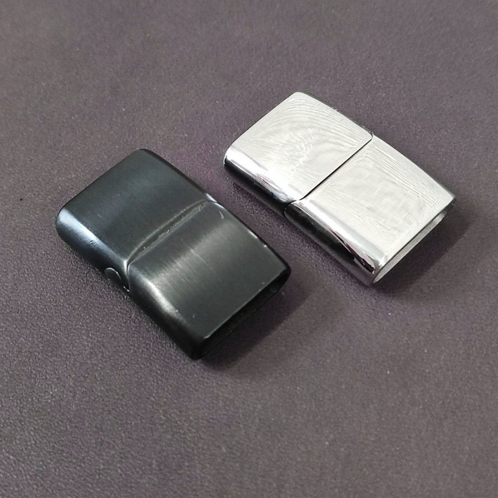 Замок магнитный из нержавеющей стали с покрытиями разных цветов - для плоских кожаных шнуров 16х5 мм. Габариты застежки 26х18 мм