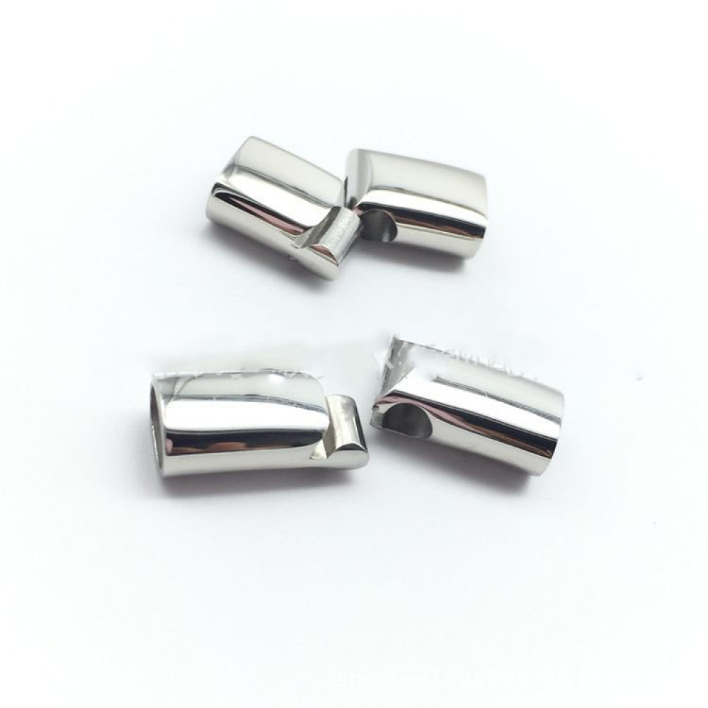 Замок магнитный из нержавеющей стали с покрытиями разных цветов - для плоских кожаных шнуров 8х4 мм. Габариты застежки 23х10 мм