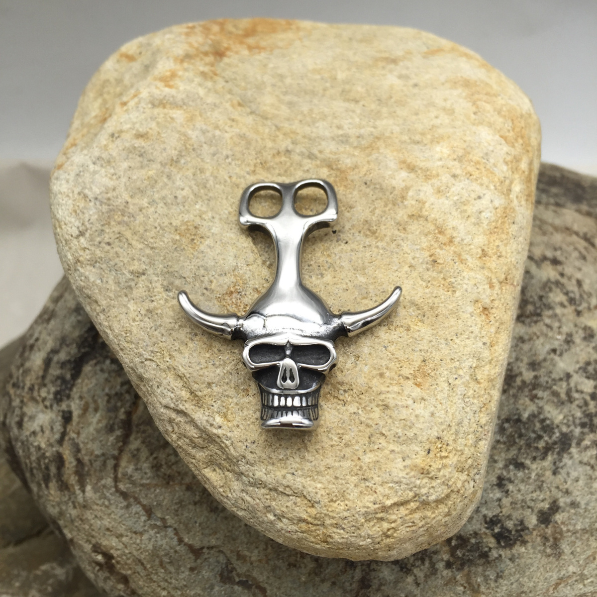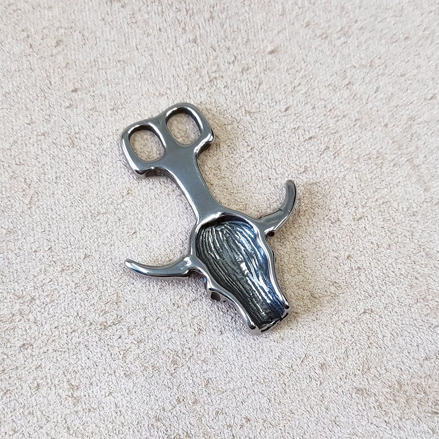 Замок из нержавеющей стали для кожаных шнуров диаметром до 5 мм. Стальной замок на два шнура в в виде черепа с рогами