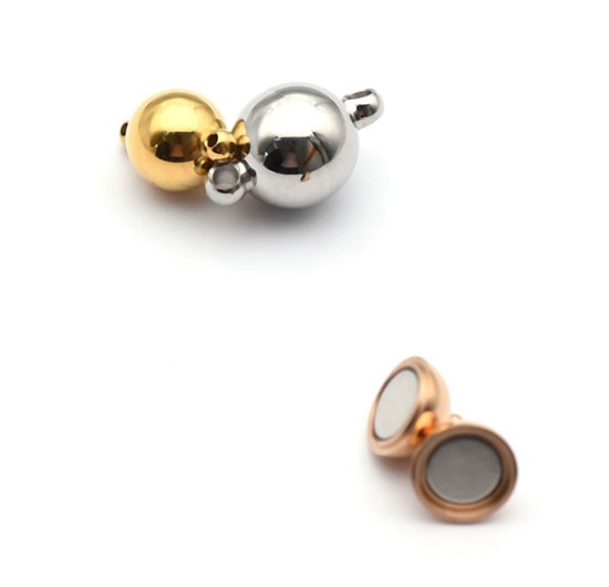 Застежка магнитная - диаметр шарика 6 мм, 8 мм, 10 мм, с "петельками" диаметра 1,2 мм для шнура -1мм