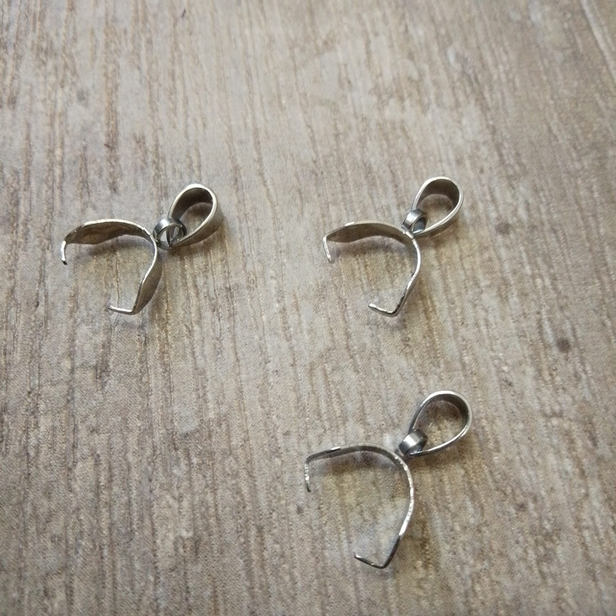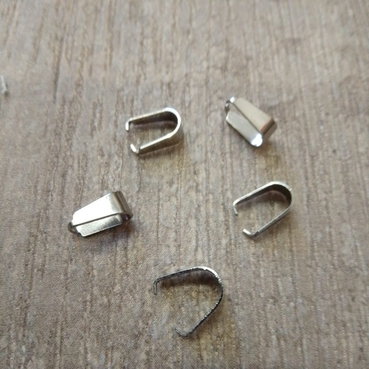 Стальная скоба (зажим, кольцо соединительное) для подвеса кулонов, подвесок, декора на кожаный шнур представлена в двух вариантах: