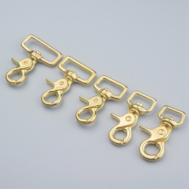 Карабин поворотный с собачкой, благодаря которой карабин удобнее расстегивать.  Материал: латунь