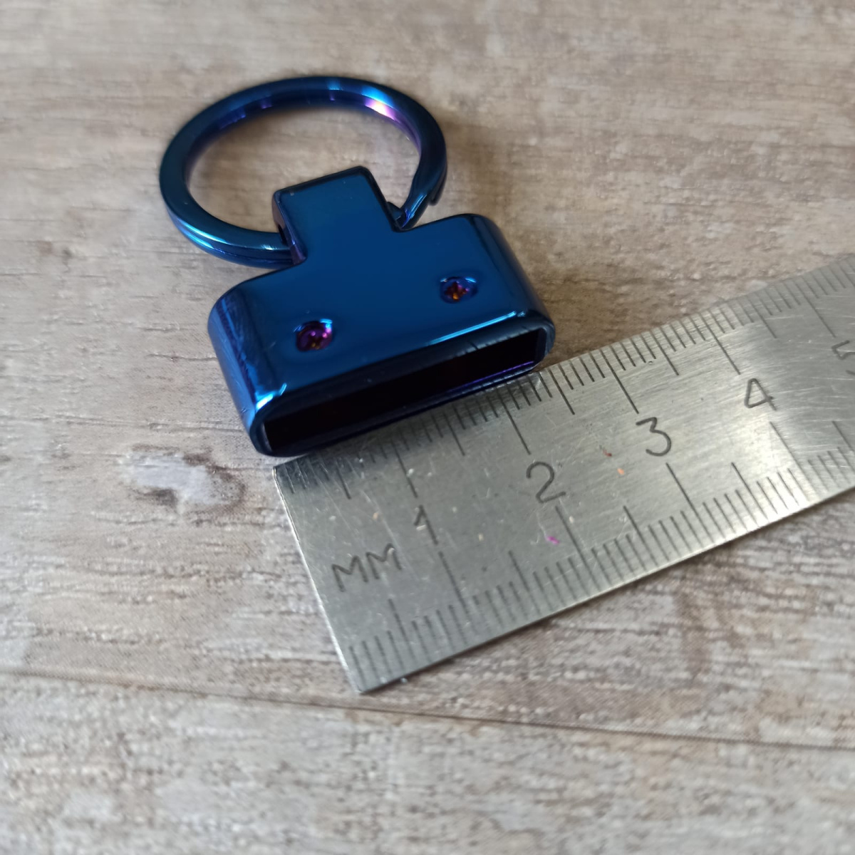 Металлическая декоративная фурнитура для крепления брелока с кольцом синего цвета