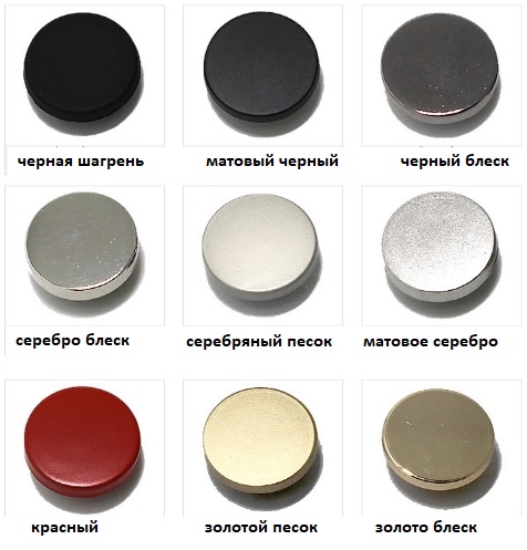Кнопки с плоской шляпкой разных цветов.