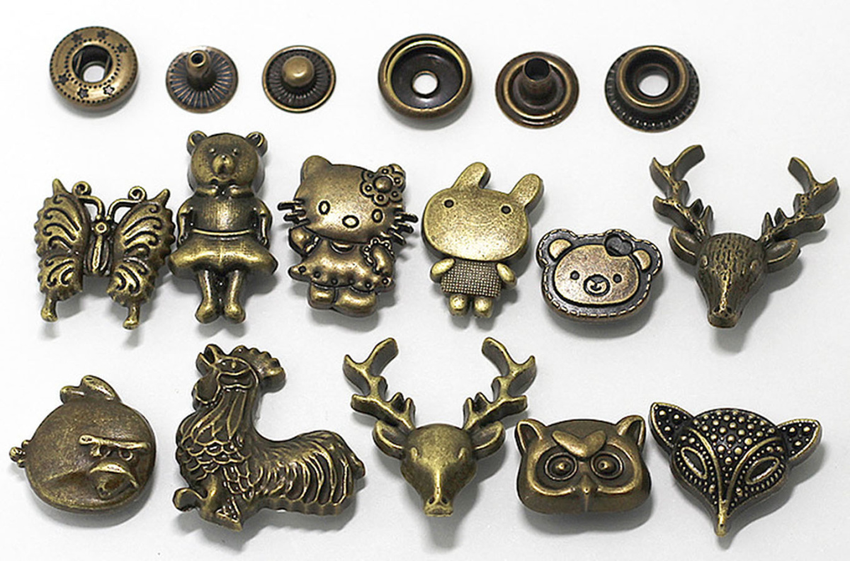 Такие кнопки устанавливаются при помощи специальных инструментов на одежду, сумки, кошельки, браслеты и т.д.