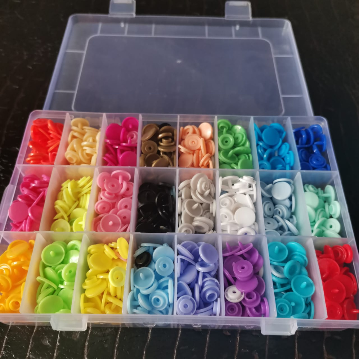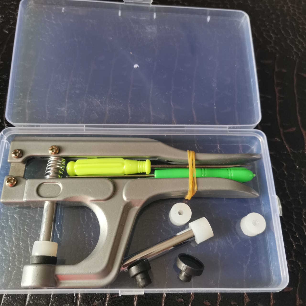 Набор пластиковых кнопок с комплекте с инструментами и прессом.