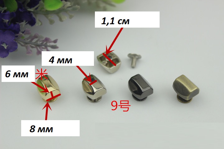 Высота пукли с винтом: цвет серебро-11 мм, светлое золото, черный, темная латунь-10мм.