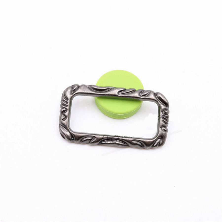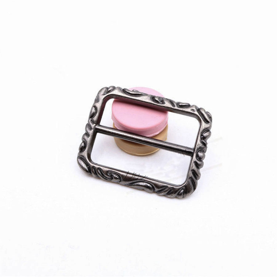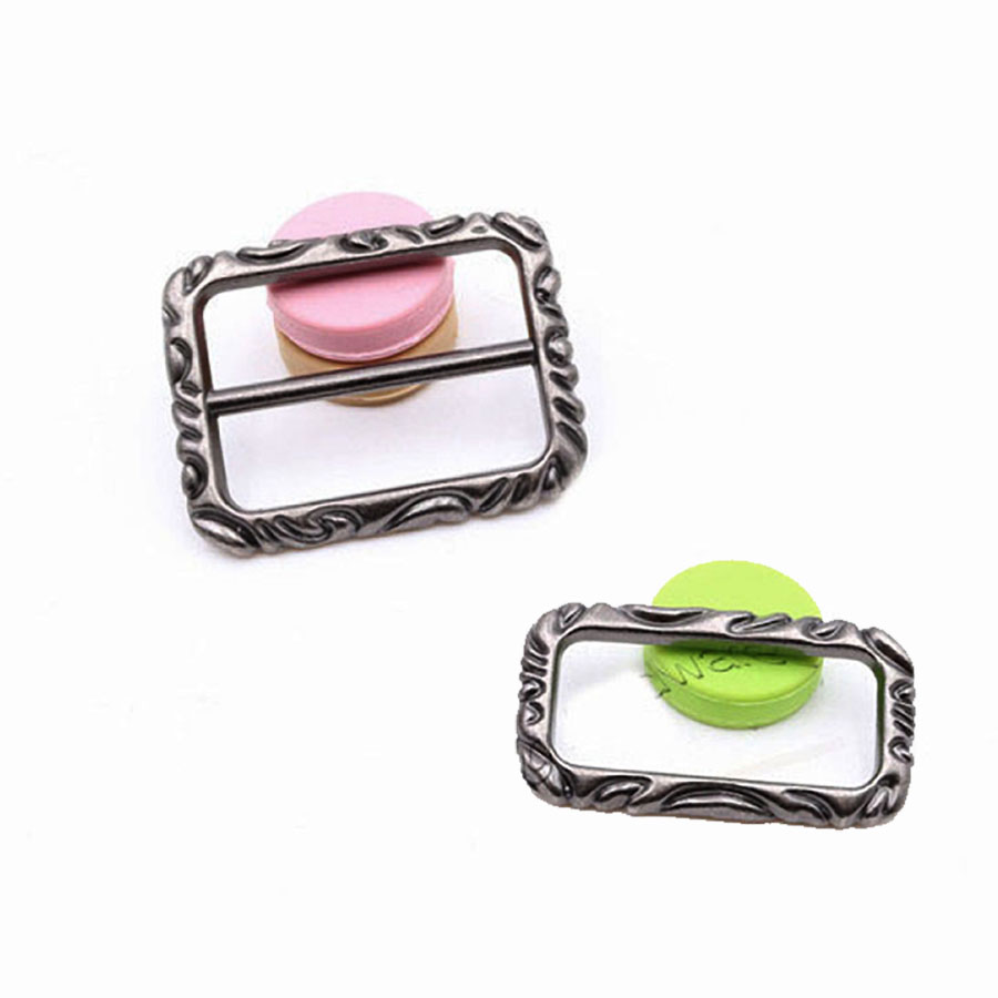 Комплект металлофурнитуры включает в себя рамку и регулятор, предназначены для портфелей, сумок и других галантерейных изделий. Рамка и регулятор выполнены из сплава и имеют резной узор.