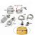 Помимо самой сборной конструкции замка для сумки в комплект входит всю необходимая фурнитура, включая навесной замочек с ключом,  1 уплотнитель-вставку для ручки, 2 карабина , 2 полукольца D-образные двойные,  4 пукли.