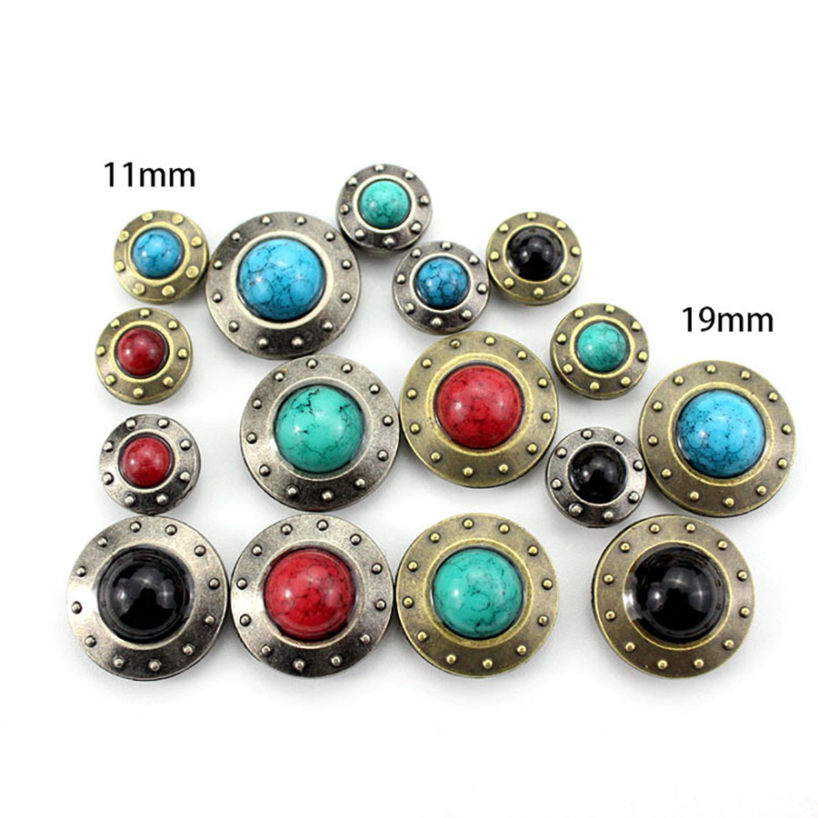 Металлические украшения для кожи - кончо с декоративными цветными вставками