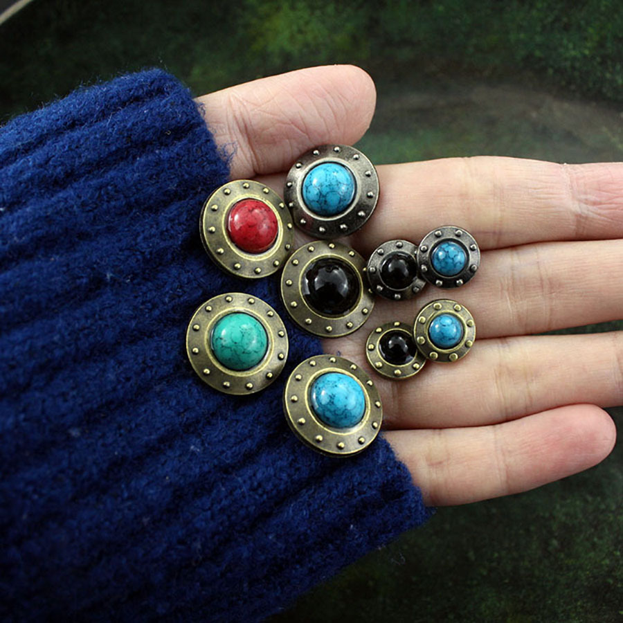 Металлические украшения для кожи - кончо с декоративными цветными вставками