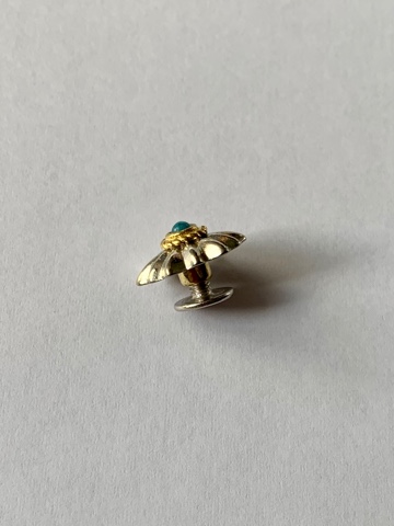 Кончо в виде цветка с голубой вставкой в центре. Крепление винтовое, материал: латунь