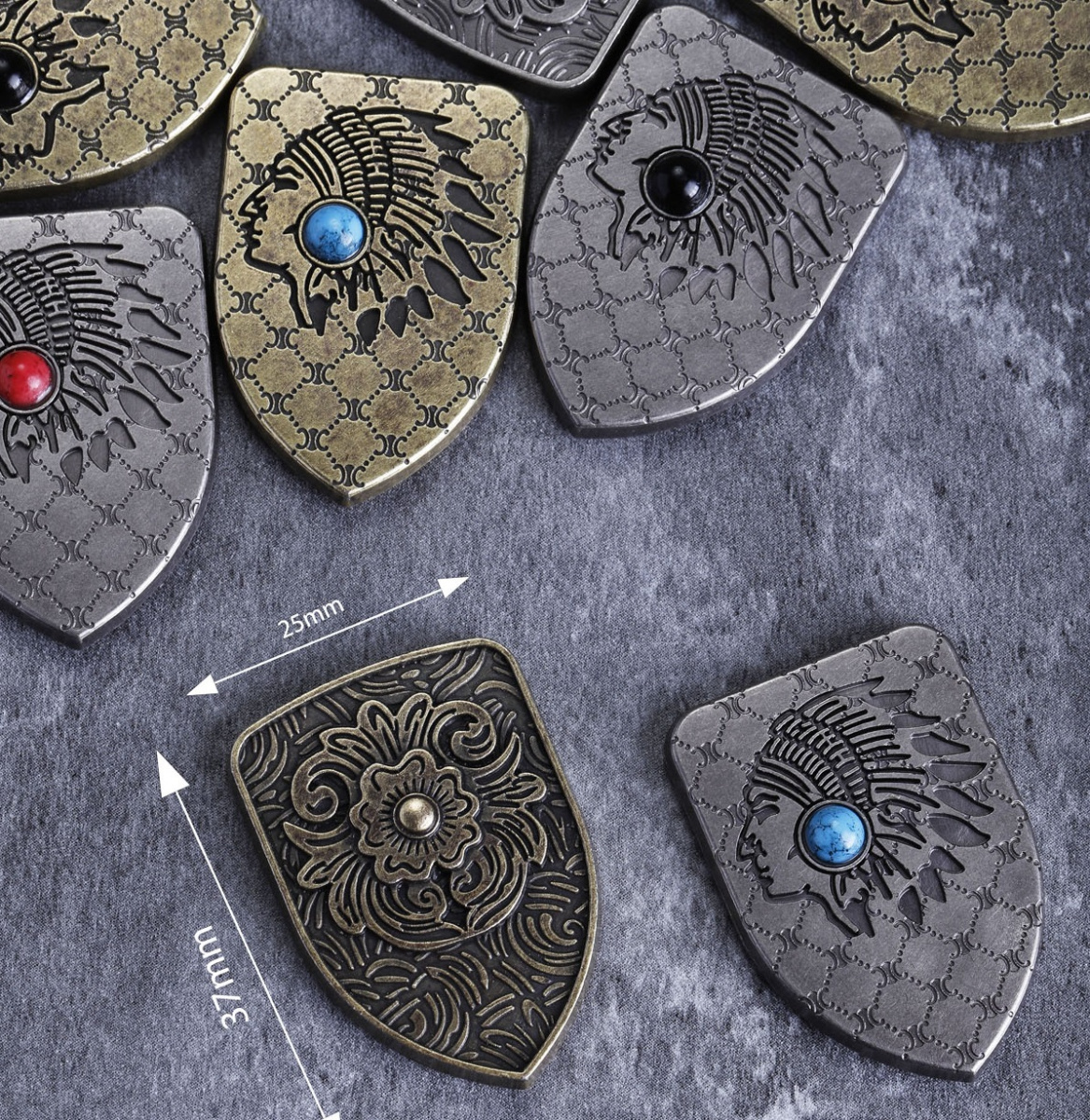 Кончо в форме "щита" прекрасно подойдут для изготовления брелоков, под которые в нашем магазине можно купить штанцформу.