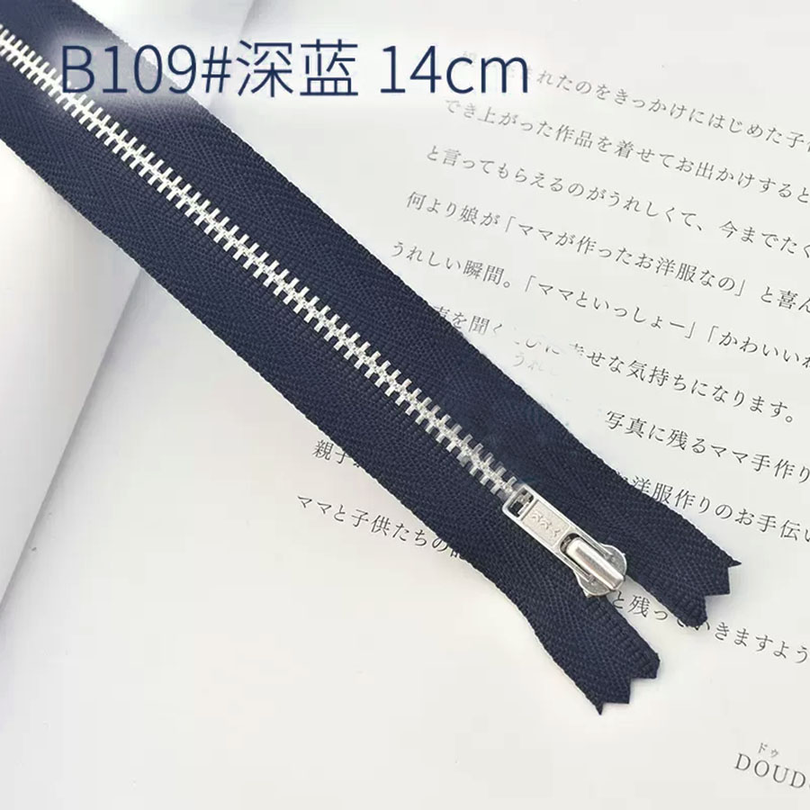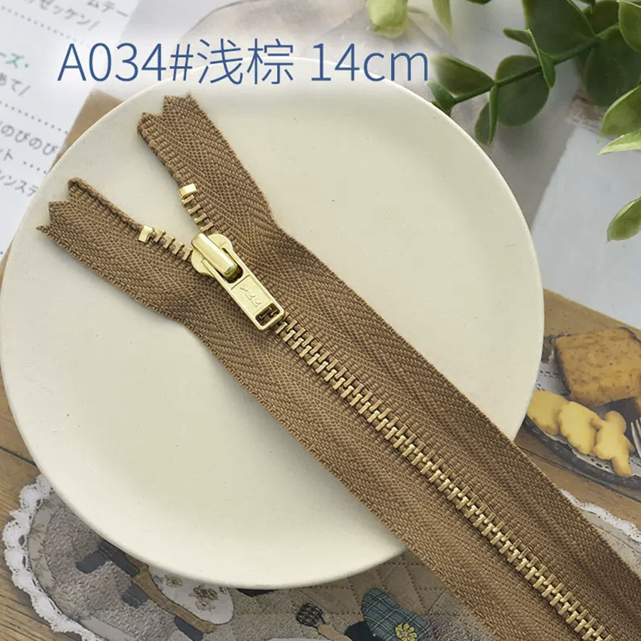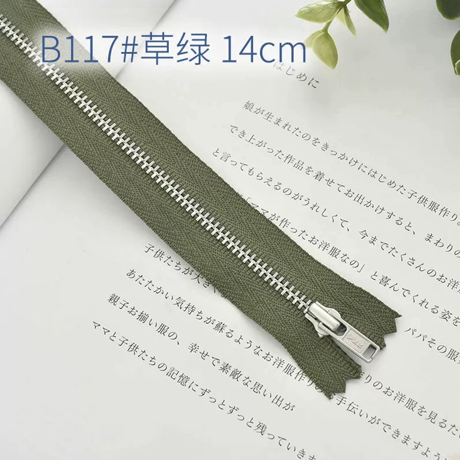 Высококачественная металлическая молния №3  (ширина звена молнии в закрытом состоянии 3мм).  Длина 14 см, зубья под серебро и золото.