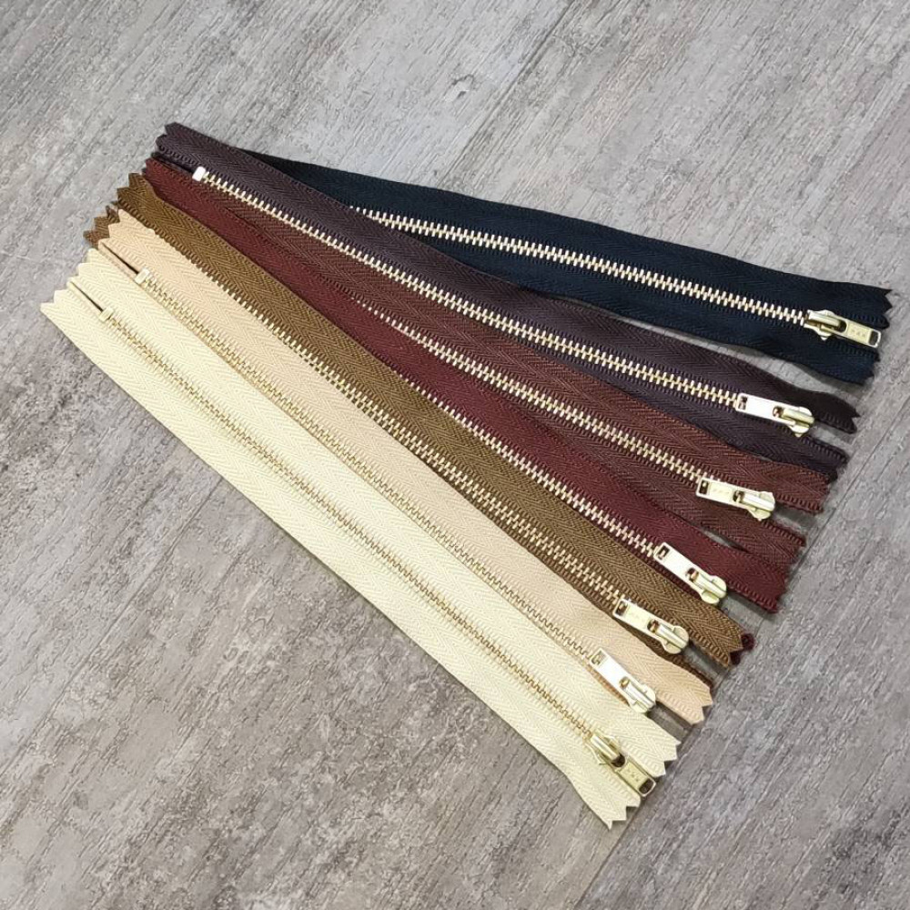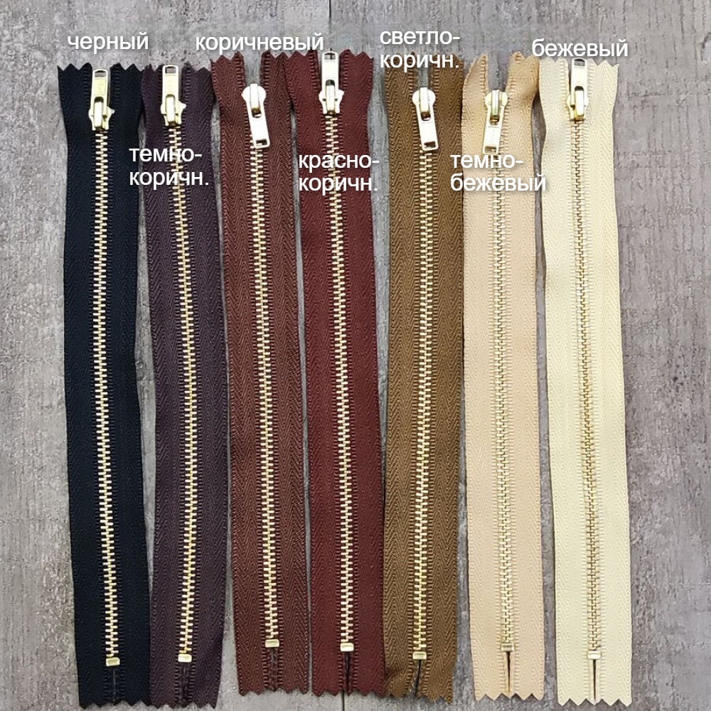 Высококачественная металлическая молния №3  (ширина звена молнии в закрытом состоянии 3мм).  Длина 30 см, зубья под золото