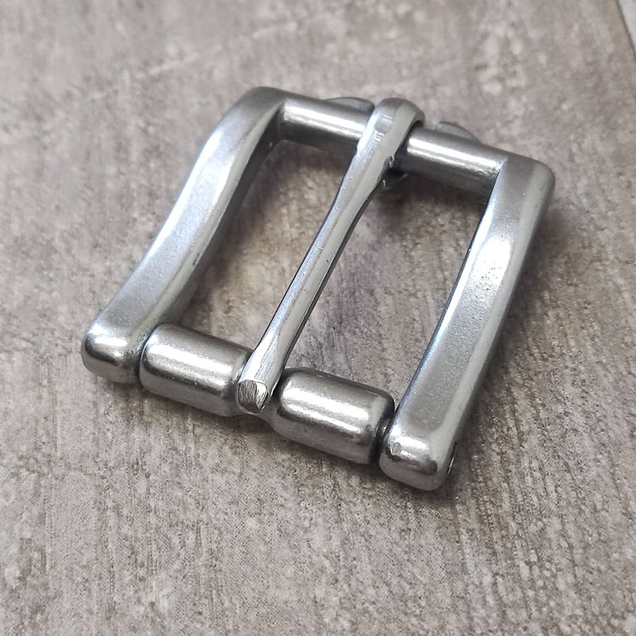 Пряжка стальная с роликом и фиксатором язычка для кожаных ремешков.