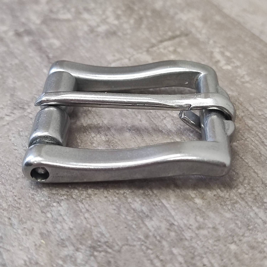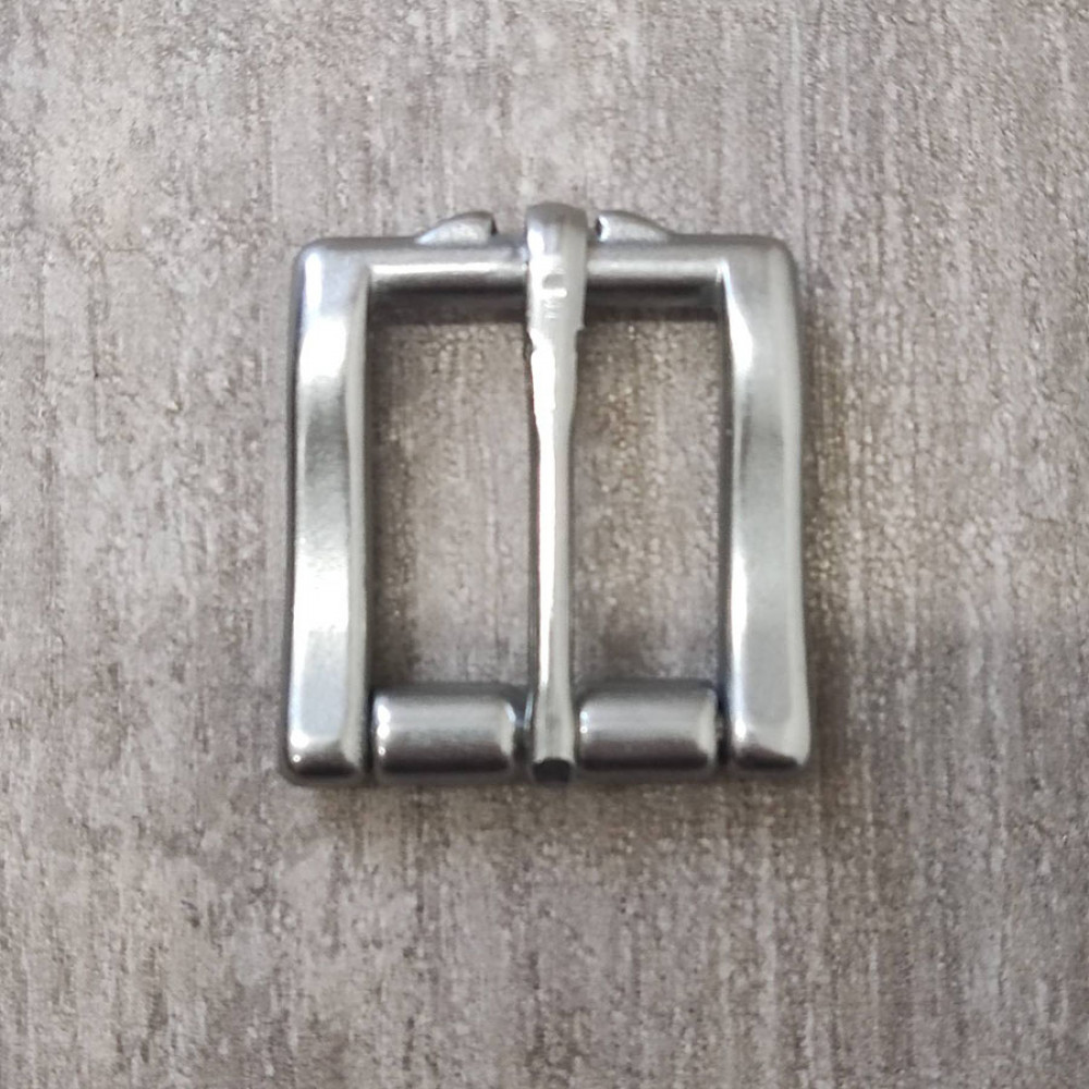 Пряжка стальная с роликом и фиксатором язычка для кожаных ремешков.