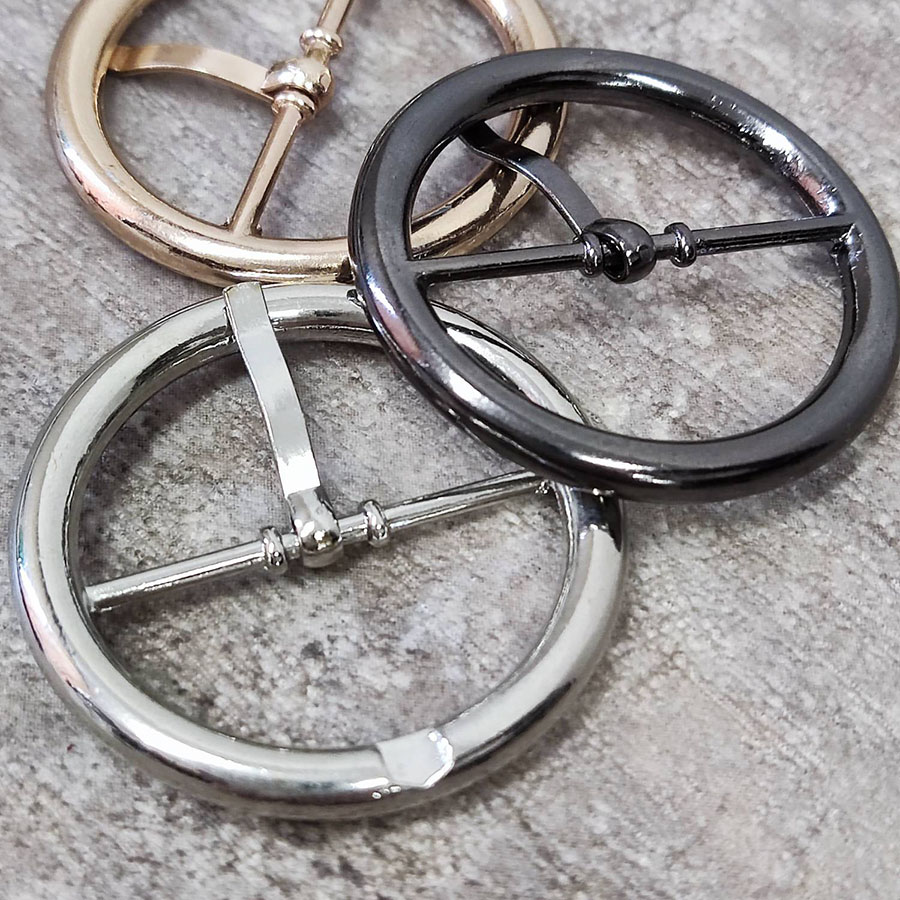 Пряжка металлическая круглая, с фиксатором языка - для кожгалантерейных изделий (обувь, сумки, портфели, ремни и др.)