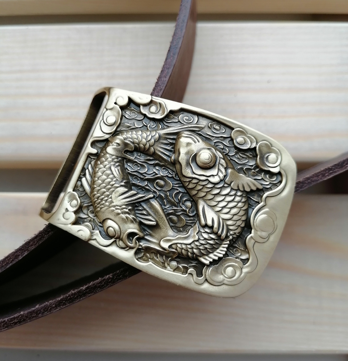 Пряжка для ремня декоративная с рельефным изображением двух рыб