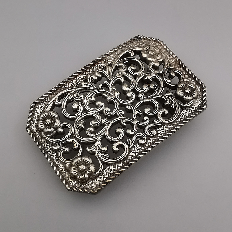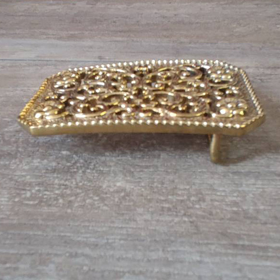 Качественная латунная пряжка для ремня с изображением в виде цветочного узора.