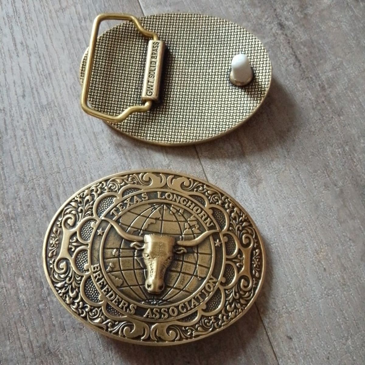 В пряжке подходит латунная шлевка Шлевка для ремня c орнаментом Латунь №2, немного отличается оттенок латуни