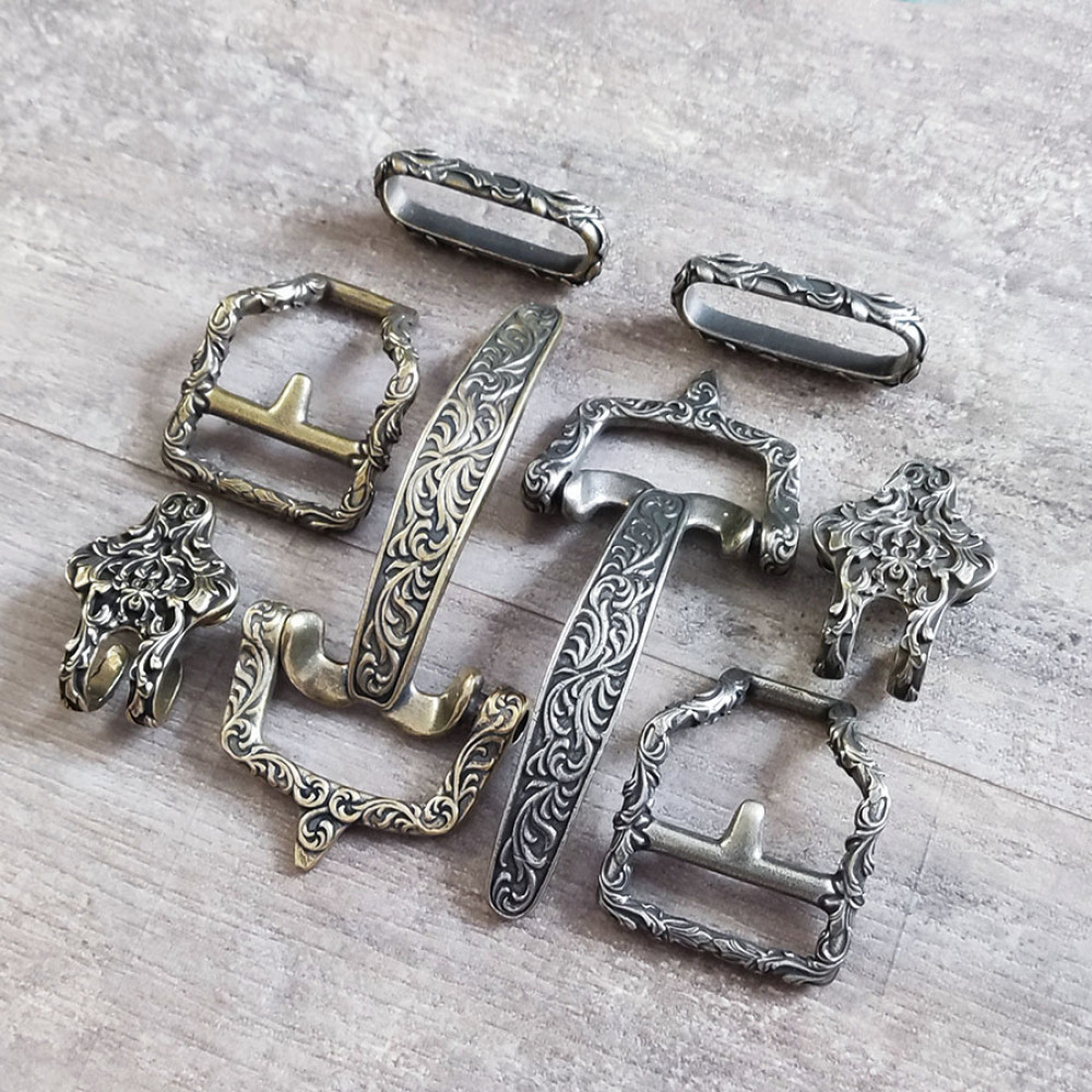 Декоративная пряжка для ремня Littleton (Литлтон) в комплекте из четырех частей, с резным рисунком