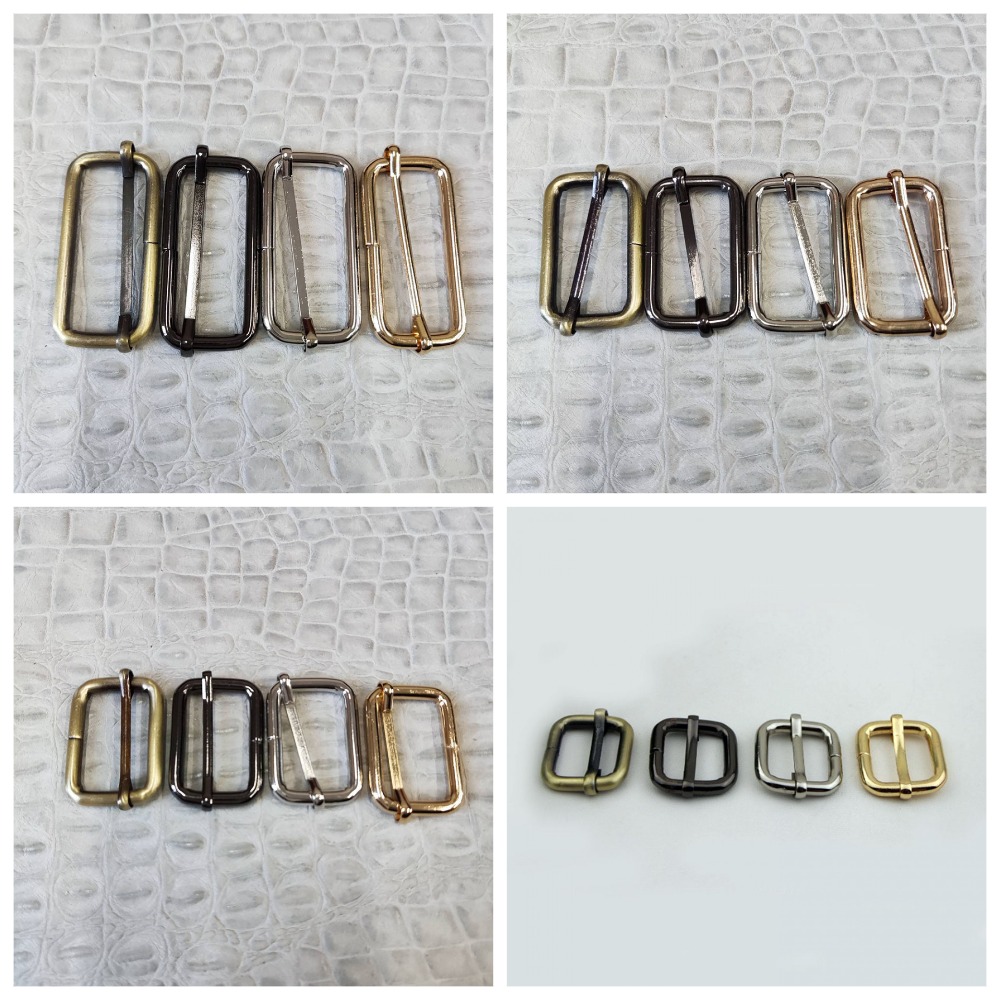 Металлические пряжки-регуляторы, слайдеры для ремня используются для изготовления галантерейных изделий-сумок, рюкзаков, кейсов.