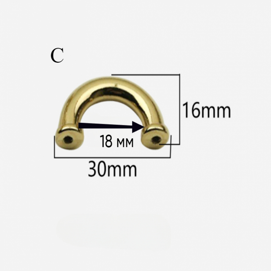 С: высота 16 мм, внутреннее расстояние 18 мм, расстояние между центрами крепления 24 мм, толщина прутка 4,5 мм.