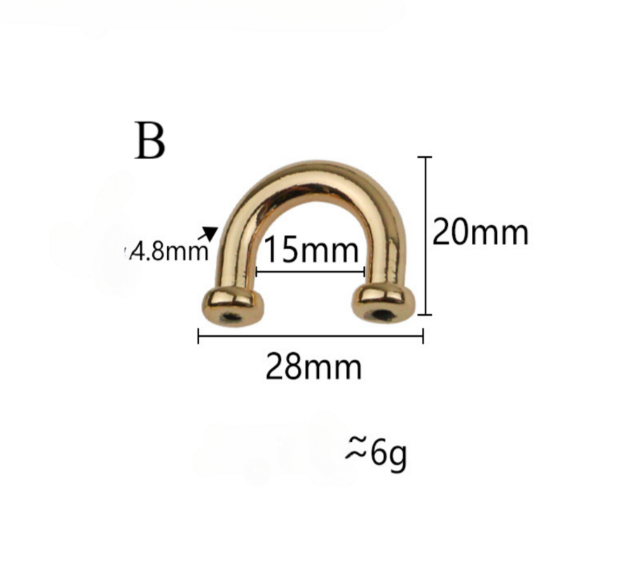 В: высота 20 мм, внутреннее расстояние 15 мм, расстояние между центрами крепления 21 мм, толщина прутка 4,8-5,0 мм;