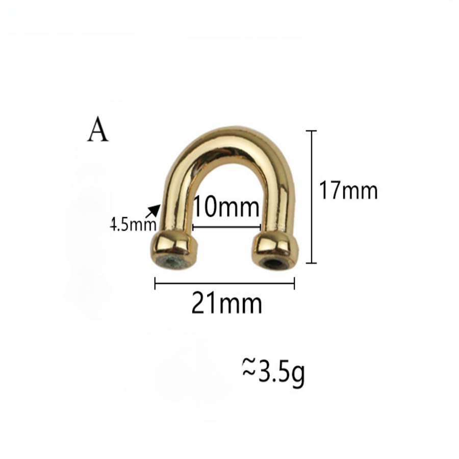А: высота 17 мм, внутреннее расстояние 10 мм, расстояние между центрами крепления 15,8 мм, толщина прутка 4,5 мм;